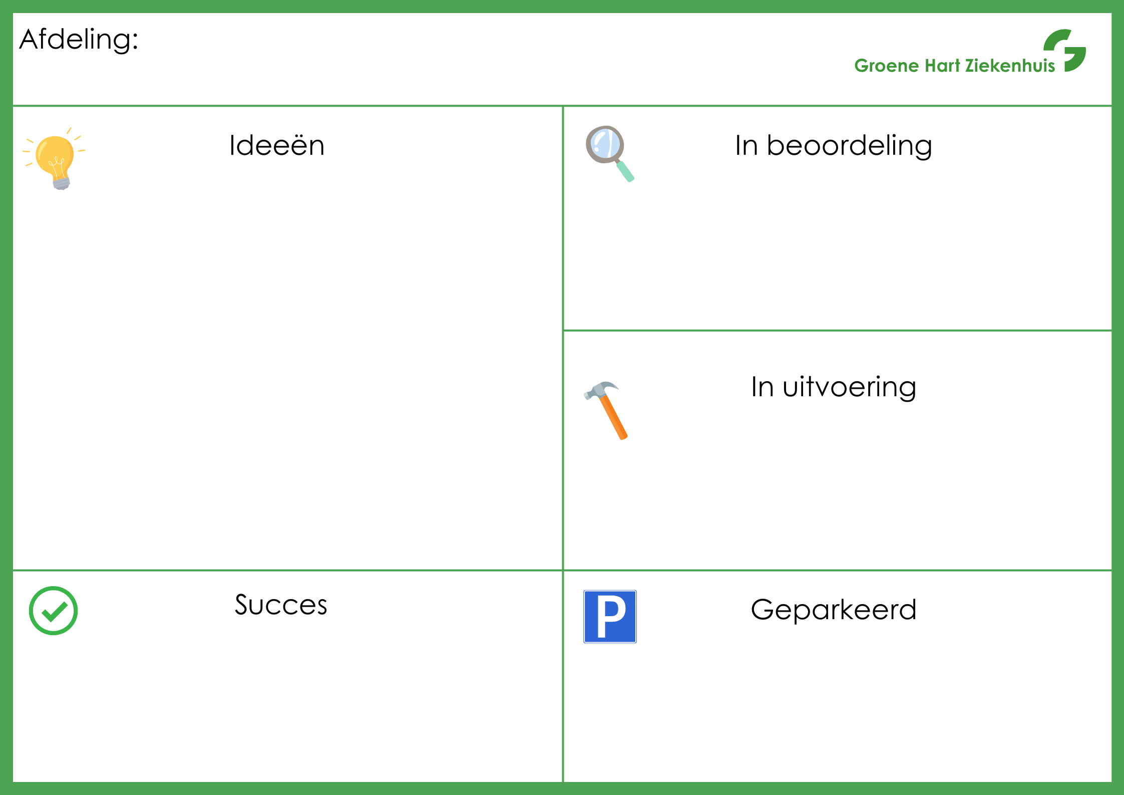 Zoals ik tijdens de bijeenkomst al vertelde: bij ons heet het continu verbeteren. We hebben binnen het GHZ een LEAN-team dat om advies gevraagd kan worden: EHBV – Eerste Hulp Bij Verbeteringen.